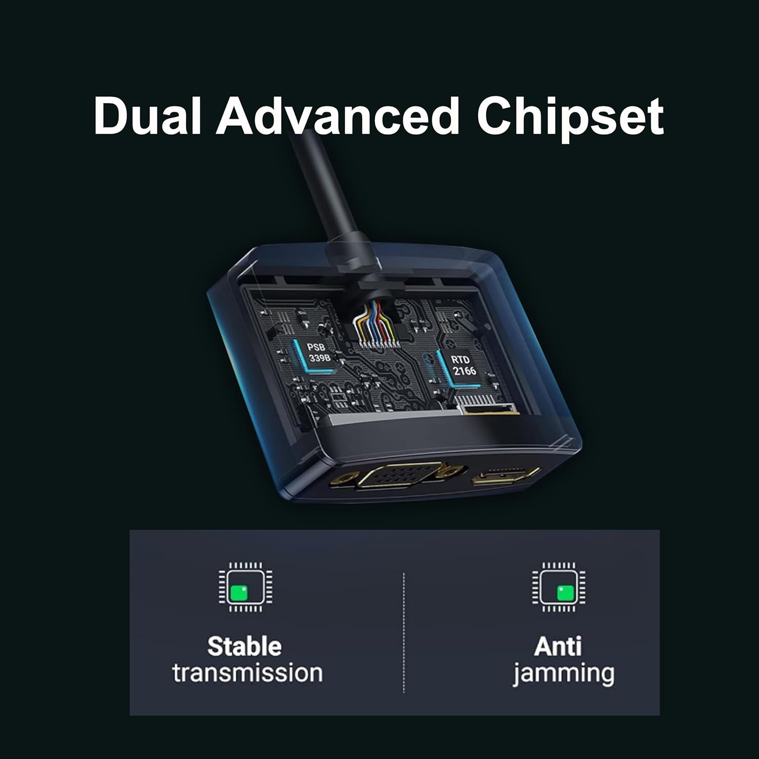 توصيل Mini DisplayPort بـ VGA: قم بتوصيل جهاز MacBook أو iMac أو أي أجهزة أخرى مزودة بـ Mini DisplayPort بشاشات وأجهزة عرض وشاشات تدعم VGA بسهولة.